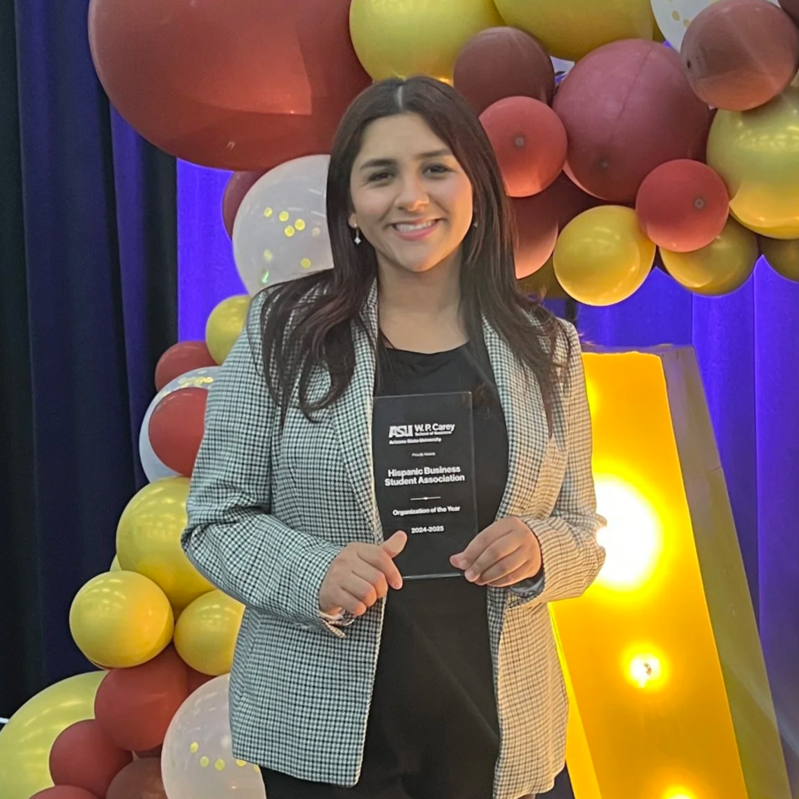 To wrap up the end of my term and college career, I was thrilled to accept the W.P. Carey School of Business Organization of the Year award on behalf of HBSA!